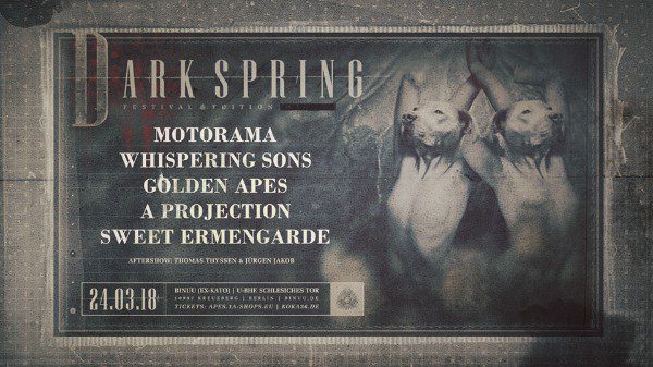 Hello , Friends and followers of dark, atmospheric guitar music should mark the 24 of March 2018 prominently, because on that day Golden Apes will invite once more into the holy halls of the Berlin-based Bi Nuu Club, to celebrate the ninth issue of the Dark Spring Festival.